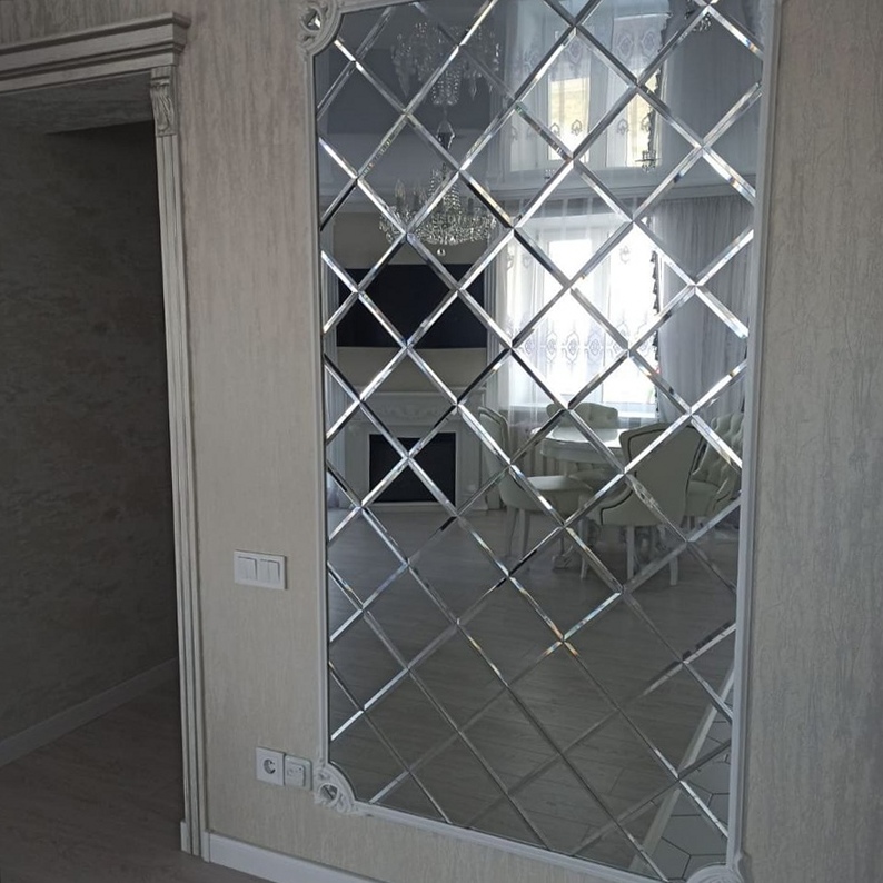 Использована зеркальная плитка "вытянутый ромб" с фацетом.